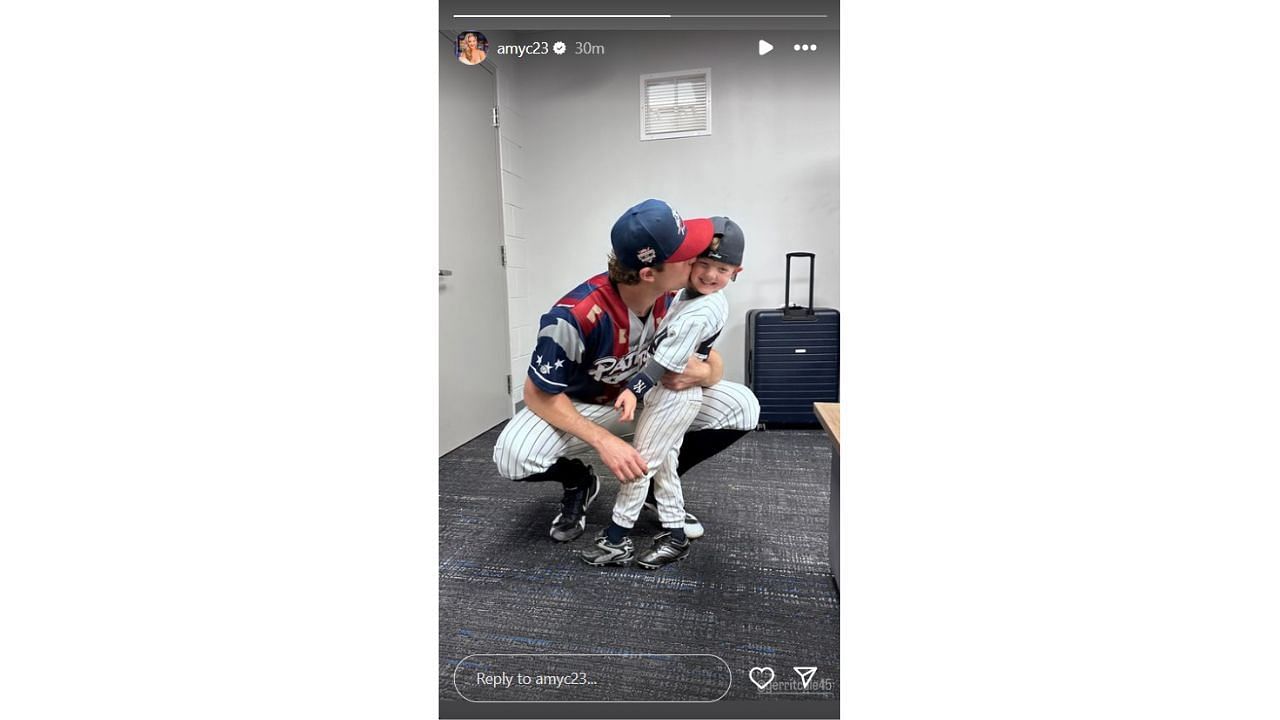 Cole's wife, Amy, shared an adorable moment between Cole and his son Caden. The Yankees pitcher kissed his son on the cheek following another impressive start.