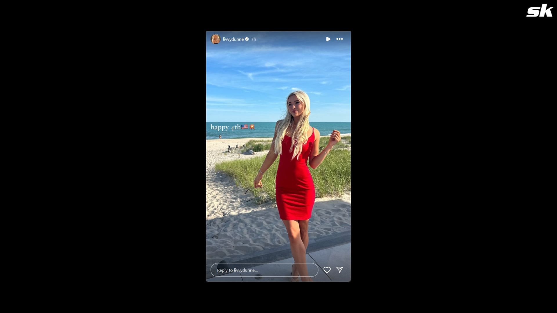 Paul Skenes' girlfriend, Olivia Dunne, was in full verve and delight in San Harbor, New York, to celebrate the 4th of July. She rocked a red dress while enjoying her time at the beach. Livvy uploaded an image from Thursday on her Instagram story and captioned it as:
