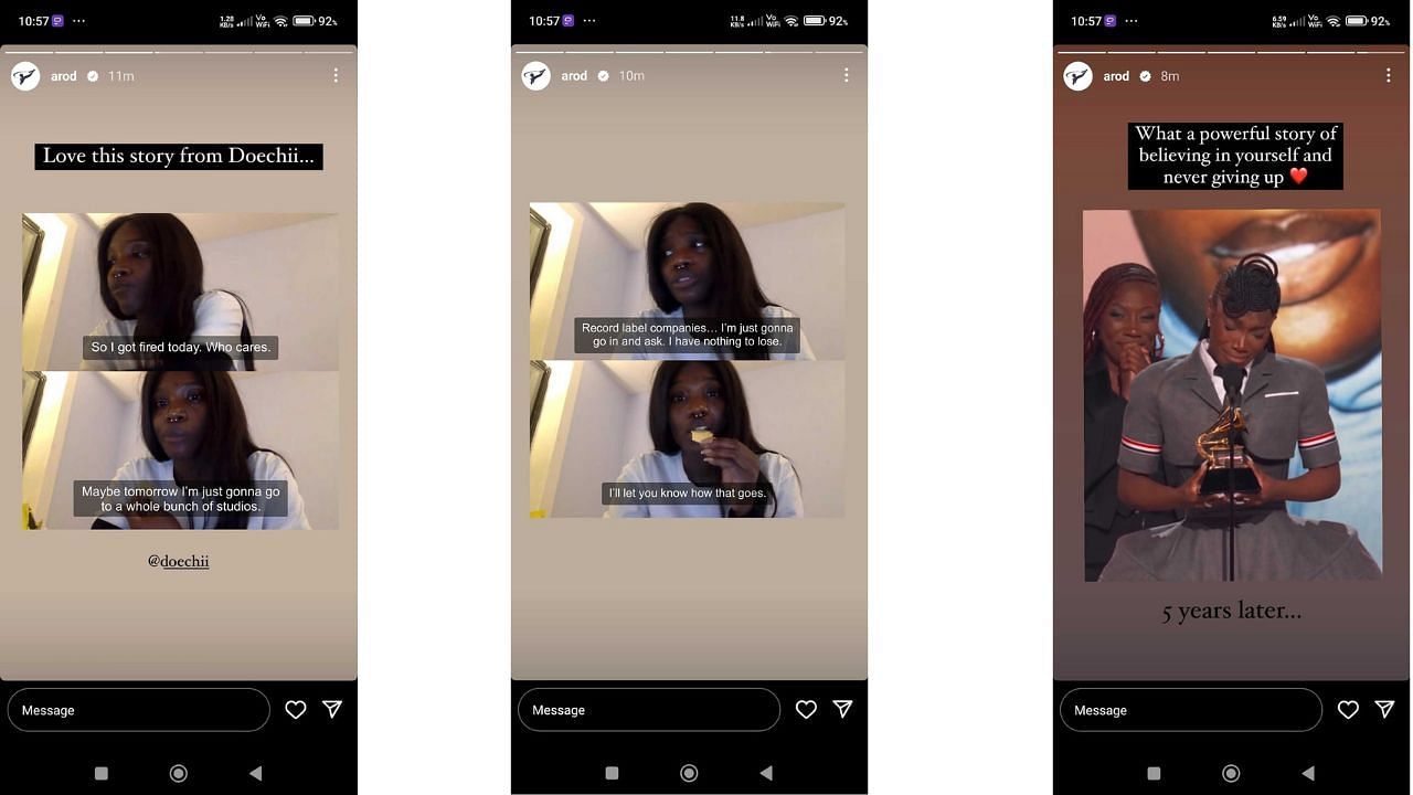 Rodriguez shared a series of stories featuring a past video of Doechii candidly discussing a pivotal moment in her life.