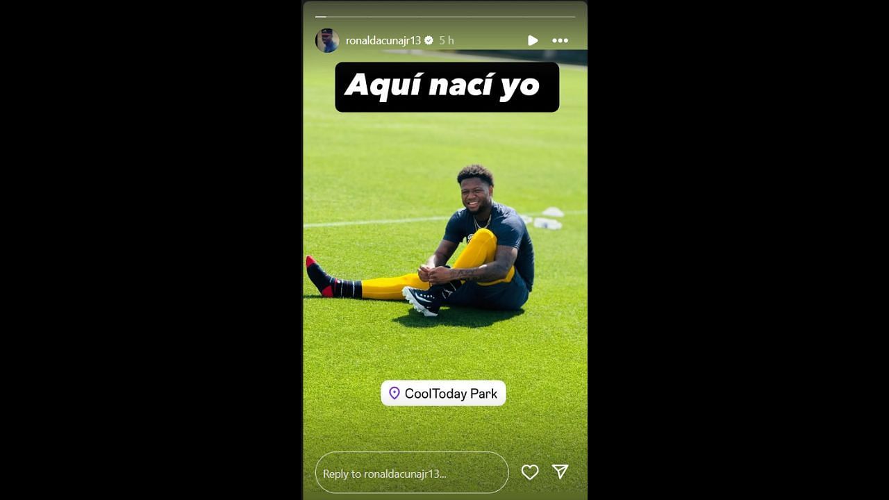 "Aqui naci yo," Ronald Acuna Jr. captioned his Instagram story in Spanish, which translates to "Here I was born."
