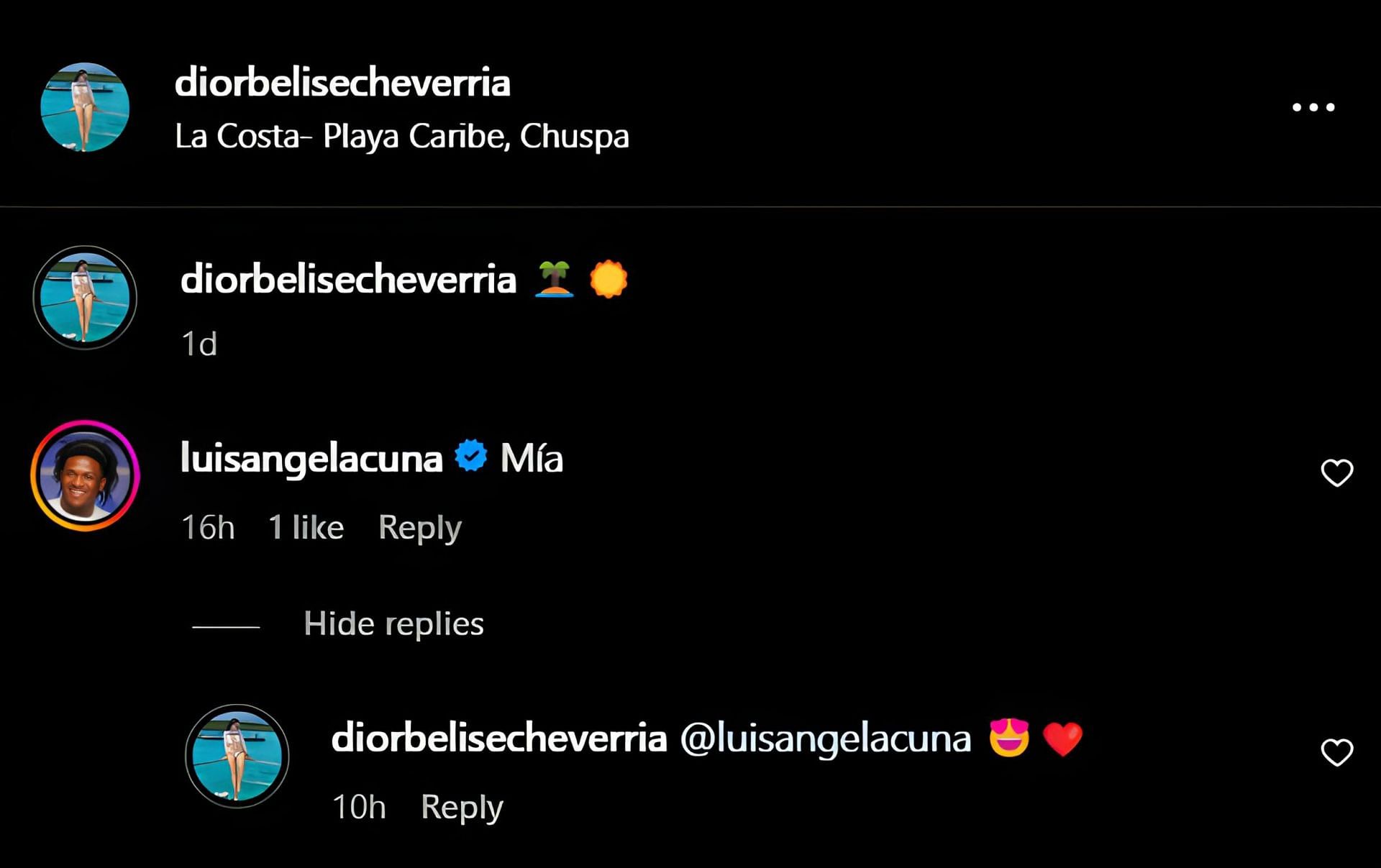 In the screenshot posted above, Luisangel Acuna had a one-word response to Dior's post.