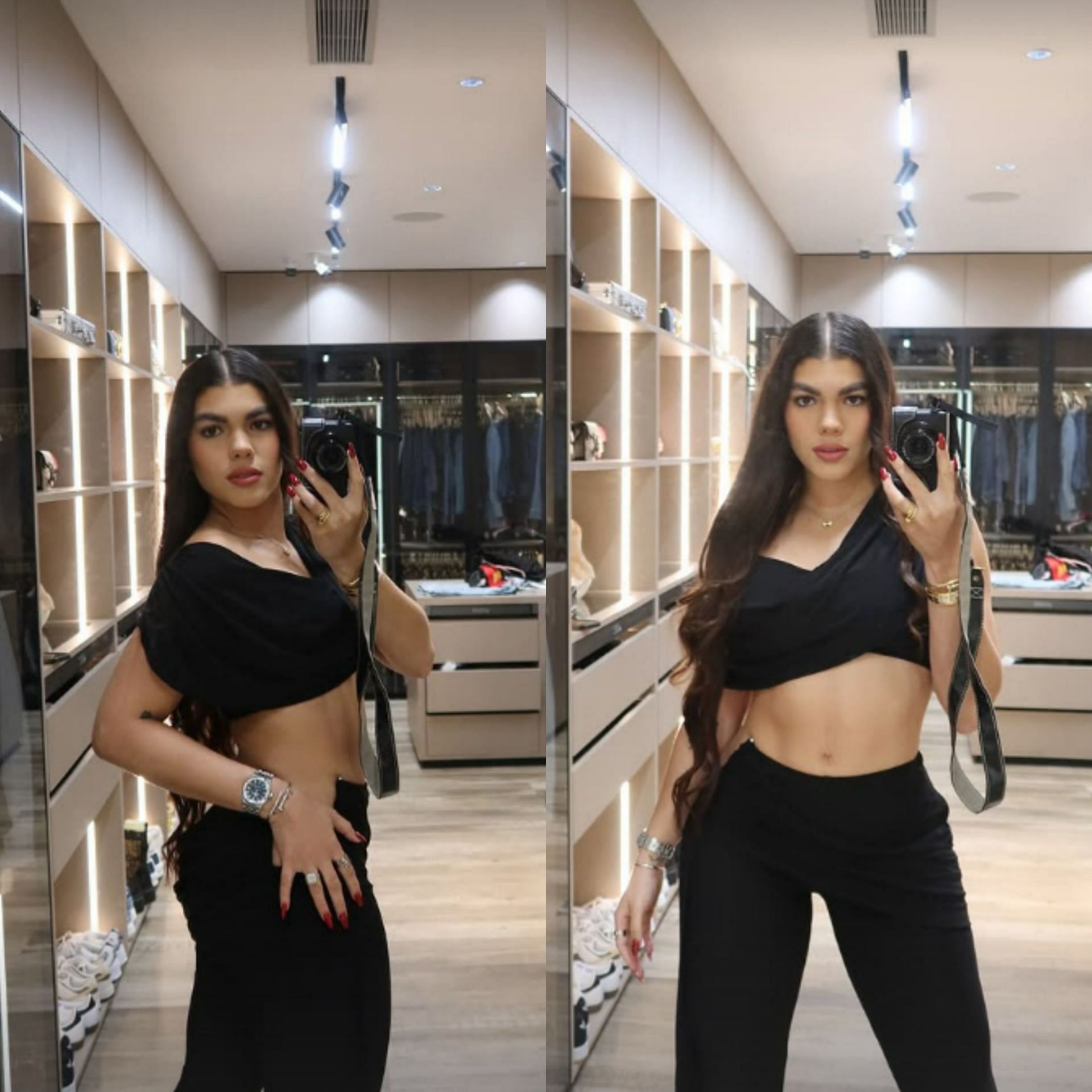 On Tuesday, Maria treated her Instagram followers to two stunning selfies on her stories. The first showed a front view of her chic black outfit, featuring a cropped top paired with matching pants. The second selfie offered a striking side profile.