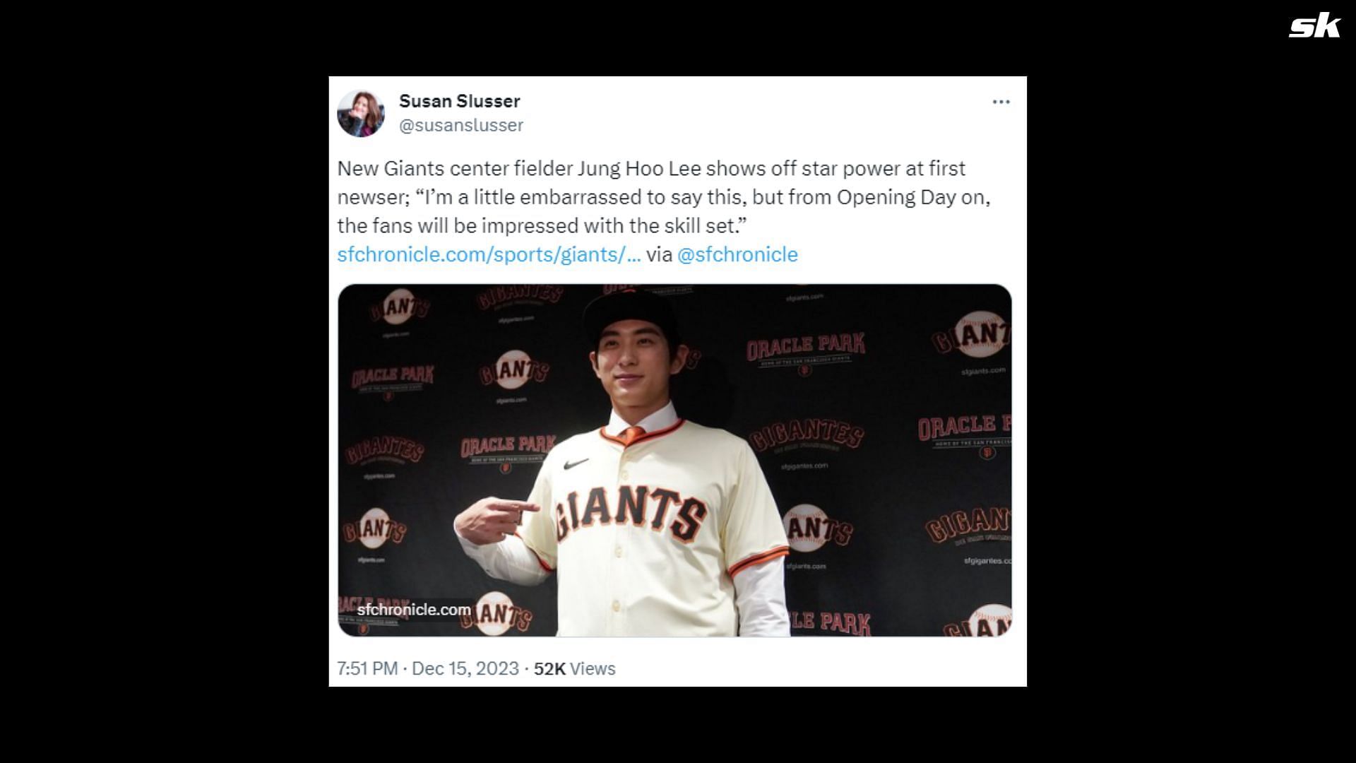 "New Giants center fielder Jung Hoo Lee shows off star power at first newser; 'I’m a little embarrassed to say this, but from Opening Day on, the fans will be impressed with the skill set'" - susanslusser
