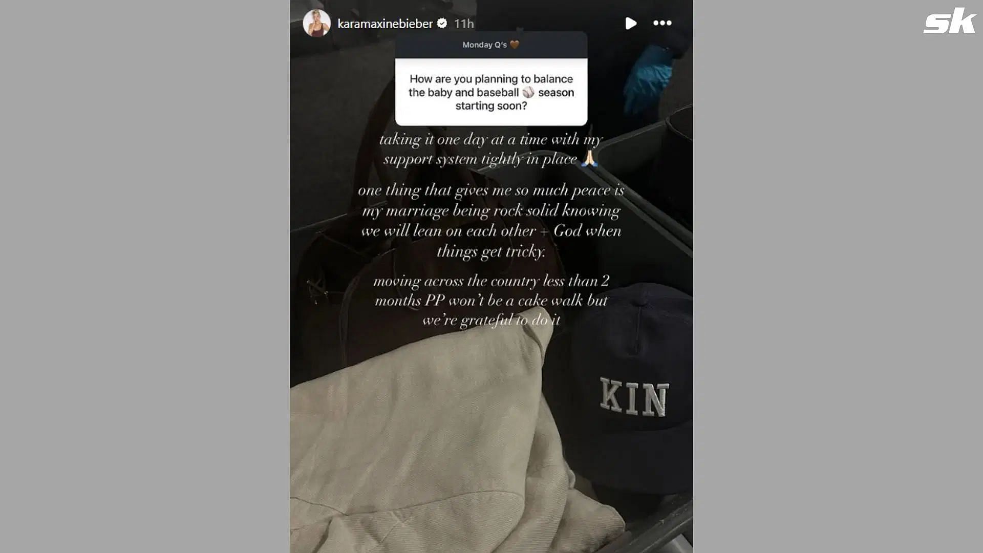The Bieber couple are excited to become parents in the coming months, and during the Q&A session on Instagram this Monday, Kara talked about how she plans to balance the upcoming baseball season and parenthood.