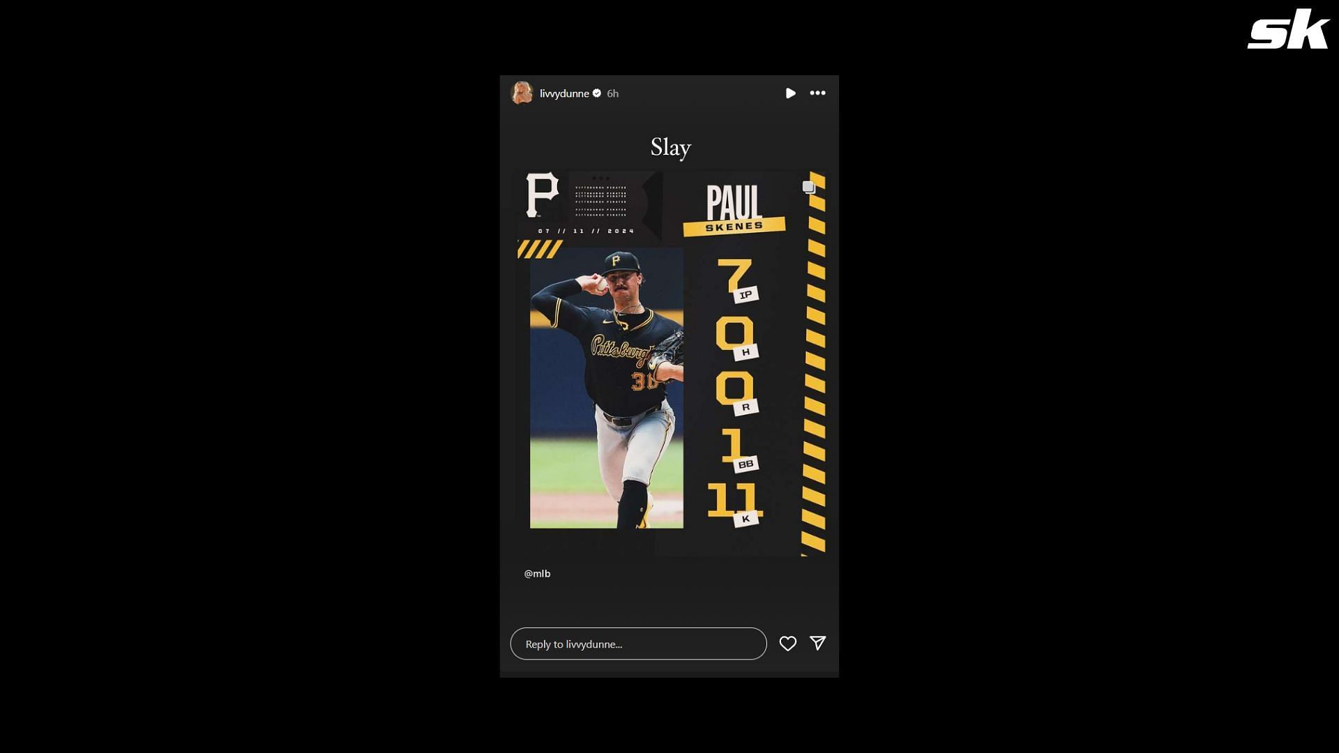 As the news of Pirates rookie Paul Skenes being selected as an All-Star broke out, Olivia Dunne planned a romantic surprise for the pitcher and shared an image on her Instagram story.