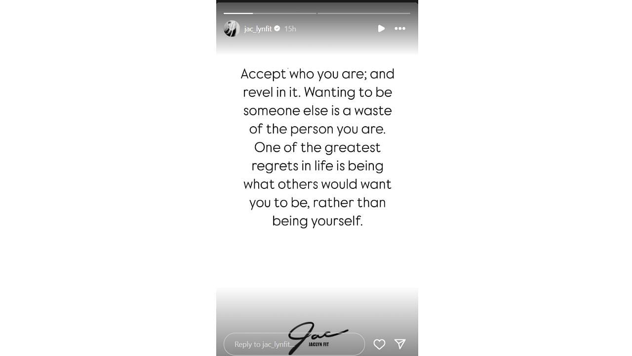 Jaclyn Cordeiro also shared a motivational quote alongside a glimpse of her morning routine on Monday.