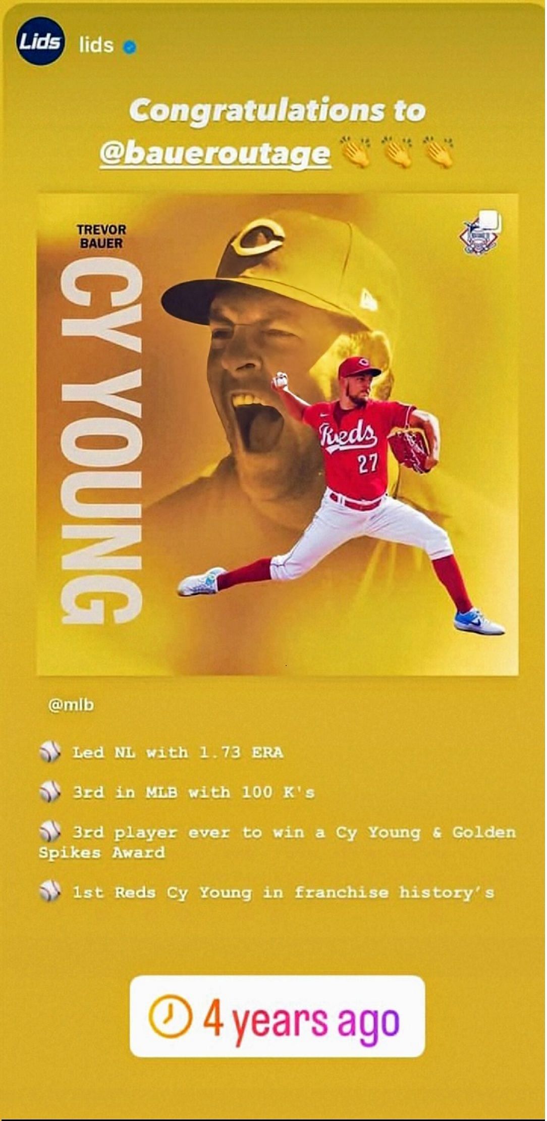 On November 11, 2020, in the midst of the COVID-19 pandemic, Trevor Bauer was announced by MLB as the winner of the National League Cy Young Award. He had posted a dominant campaign during the shortened 60-game season, beating Yu Darvish and Jacob de Grom to become the first Cincinnati Reds pitcher to claim the honor.