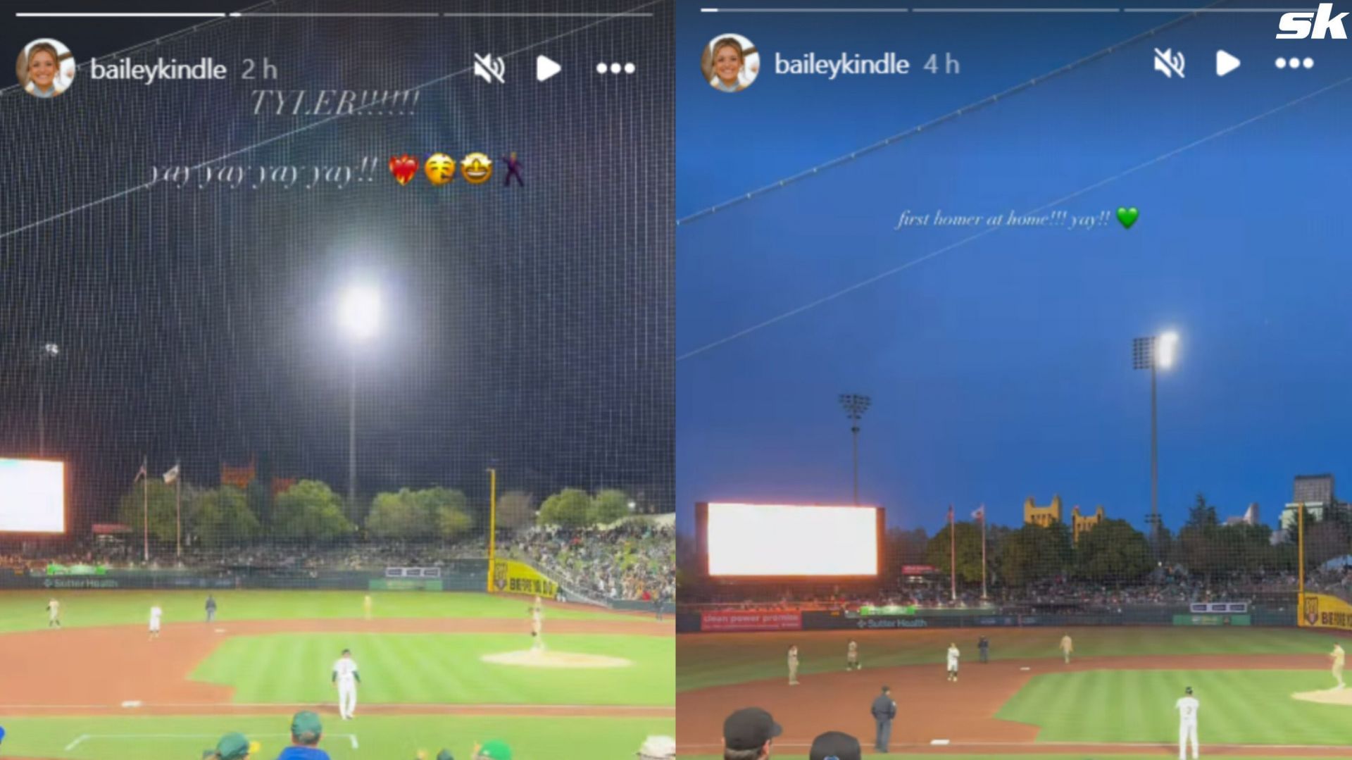Bailey and Tyler got engaged last year and the former was present in the stands for the A's series opener against the Padres. She shared her reactions after both of Soderstrom's home runs.