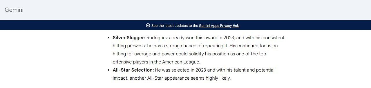 Gemini also predicted that the 23-year-old could have another All-Star appearance. His consistent hitting prowess could solidify his position as one of the top offensive players in the American League.