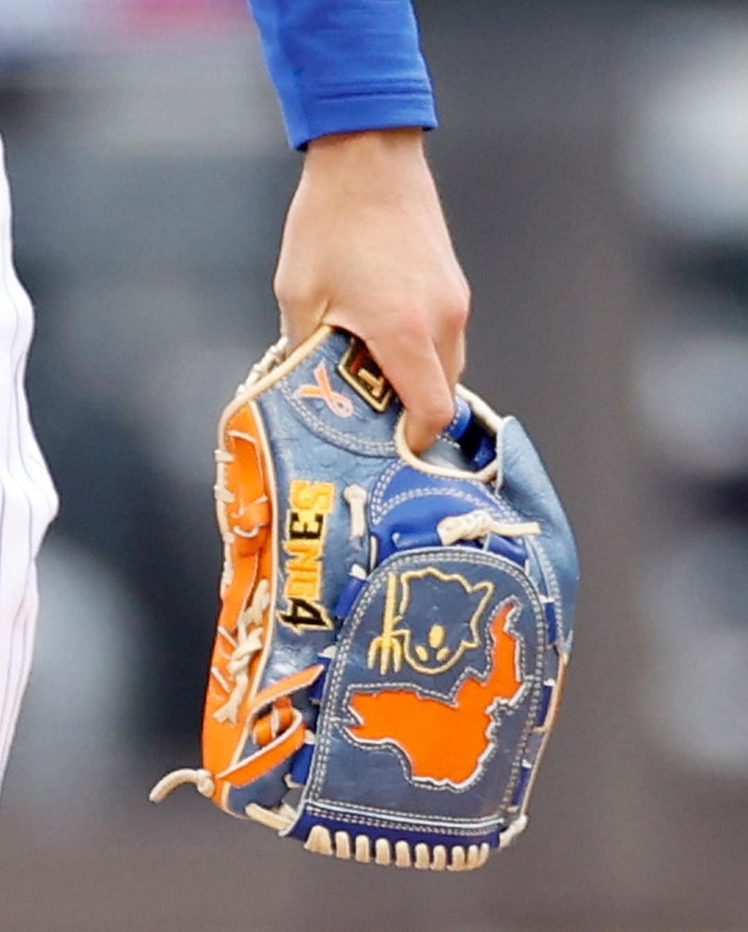 The reason Miami’s Prince Jazz glove appeared on this list is straightforward. Miami’s Prince Jazz took the custom glove to another level when he debuted an ice cream glove designed by ARiA Collective. Chisholm's cute glove looked like an ice cream cone adorned with strawberry topping and sprinkles. This design is one of three in the ice creamery line conceptualized by ARiA. The glove has luxury detailing, featuring Chisholm's logo— which is the silhouette of a web gem he caught during a 2020 game against the Rays.