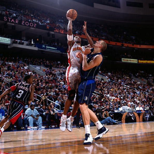He was traded to the Atlanta Hawks in 2001, among other players, as the Grizzlies acquired the 3rd pick of that draft (Pau Gasol) and a couple of other pieces. He made his first and only All Star team with the Hawks in his first season at Atlanta, finishing the season with averages of 21.2 points, 9.0 rebounds, 3.1 assists, 1.3 steals and 1.1 blocks.