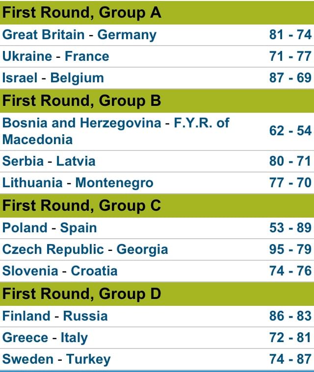 Below are results of all the matches on the fifth day of the first round of the 2013 EuroBasket.