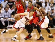 Point Guard Dragic led the way in the first half for the Heat, scoring or assisting on 29 of their 53 points. He finished the game with a Playoffs career high 30 points to go along with 7 rebounds and 4 assists. His back court mate Wade, whose climbed six spots so far in the NBA’s post-season all-time scoring list, chipped in with 22 points, 6 rebounds, 5 assists, 3 blocks and 2 steals.