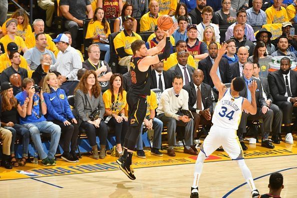 Last night, in Game 2, they shot 9-of-27 from distance. Of which, 8 were knocked down by LeBron, Kevin Love and George Hill so no "others" knocked down more than 1. Now, the Warriors have got to do a lot with why Kyle Korver has been non-existent in the Finals so far bu the Cavaliers have got to try harder to get this all-time 3-point shooter open.