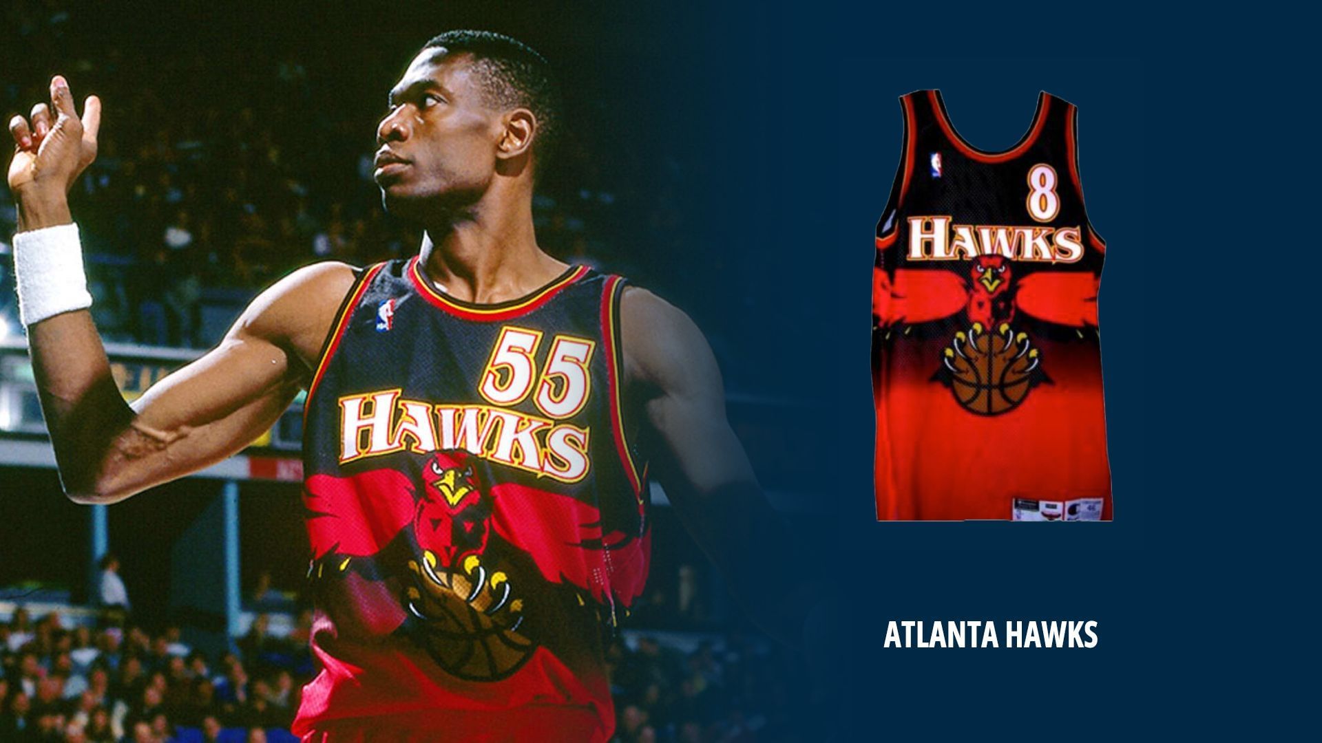 The Atlanta Hawks had iconic NBA jerseys from 1995 to 1999. They put a hawk on a jersey, which made it look astonishing. The white (home) variant of these jerseys looked fine, but the away variant was simply breathtaking.