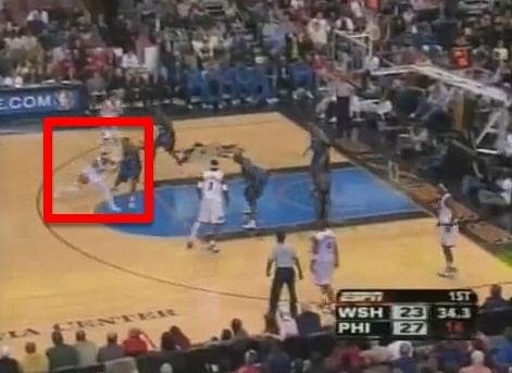 Take a minute to muse on the plight of the defender at this point. First, he thought Iverson was driving to the far end of the basket. Then he thought Iverson may pull back for a jumper. Now he’s absolutely convinced that Iverson is going to drive in for a layup.
