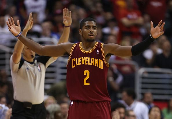 Uncle Drew: Kyrie Irving #2 of the Cleveland Cavaliers celebrates a three pointer in the closing seconds of the fourth quarter against the LA Clippers at Staples Center on November 5, 2012 in Los Angeles, California. (Getty Images)