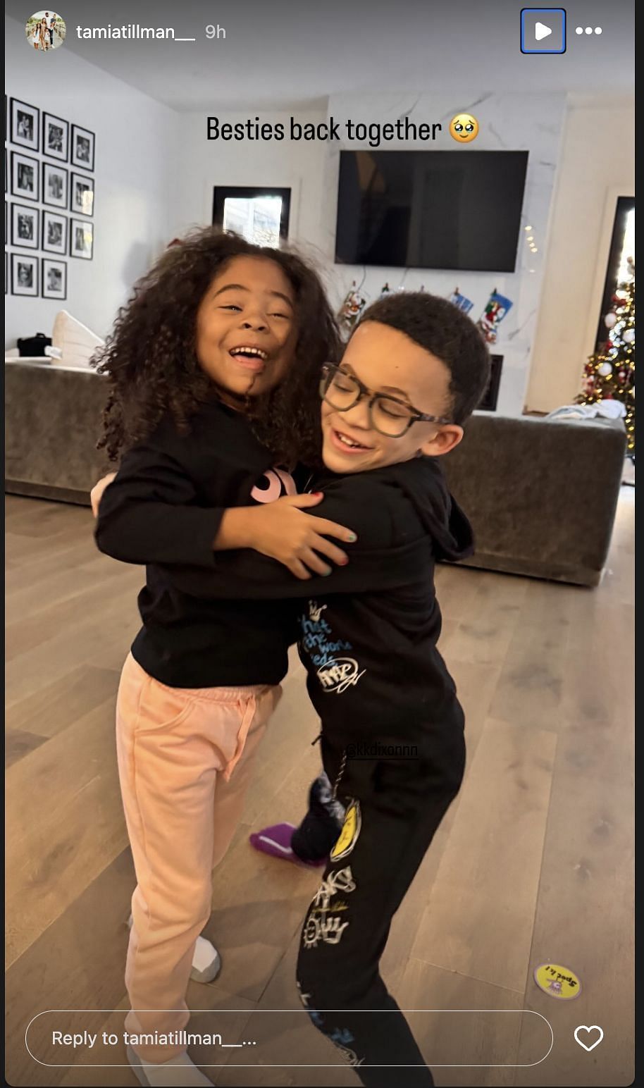In the following story, Tillman reposted Dixon's Instagram story, showing a video of Tillman's eldest daugher, Ayanna, who just recently turned eight, and Xavier Jr. greeting Kaari.