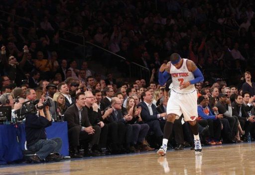 Carmelo Anthony of the New York Knicks on January 7, 2013 in New York City. Anthony scored 27 points and rookie Chris Copeland added 22 Sunday as the New York Knicks beat New Orleans 100-87 to snap a three-game National Basketball Association losing streak.