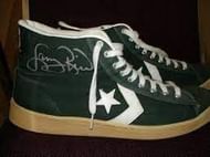 The three times NBA Champion of the Boston Celtics wore ‘The Converse Weapon’. The scary nickname of Larry Bird's Converse shoe in black and white was "the Weapon." Converse promoted the sneakers throughout the 1980s with endorsements from NBA players like Magic Johnson, and Kevin McHale, and Bird's adversary from the Los Angeles Lakers, Isiah Thomas. The basketball non-plus ultra of the late 1980s was the Converse Weapon. The shoe first became popular in 1986 when it was worn by Magic Johnson and Larry Bird.