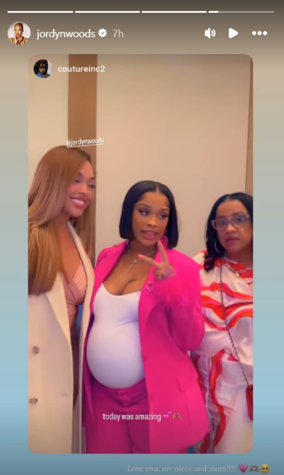 Robel took to Instagram to share many photos and videos of the day, one of which featured Jordyn Woods and Robel's mother. Woods reposted the story on her Instagram showering love on the expecting mother.