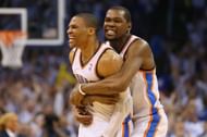 The Thunder were up 3-1 over the Warriors before falling, and the loss likely resulted in Kevin Durant bolting for the Warriors in the offseason. He now finds himself on a team where he'll have more open looks than he's ever had in his career, and with Stephen Curry and Klay Thompson he forms the most potent shooting threesome the league has ever seen.
