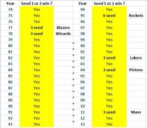 In the last 40 full seasons in the NBA, 33 winners have been a first or second seed in either conference, six have been a third seed and a certain Houston Rockets were the sixth seed in 1995 playoffs when they went on to sweep the Shaquille O’Neal-led Orlando Magic in four games.