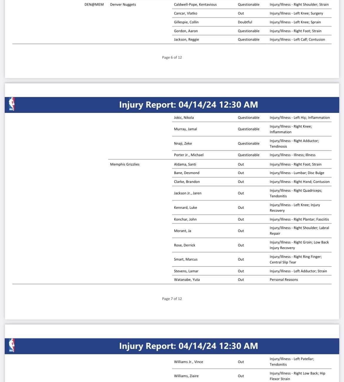 In their final regular season game, the Denver Nuggets (56-25) are still looking to secure the first seed and home-court advantage in the Western Conference. They have the same record as the OKC Thunder and Minnesota Timberwolves. Meanwhile, the injury-riddled Grizzlies (27-54) are out of playoff contention.