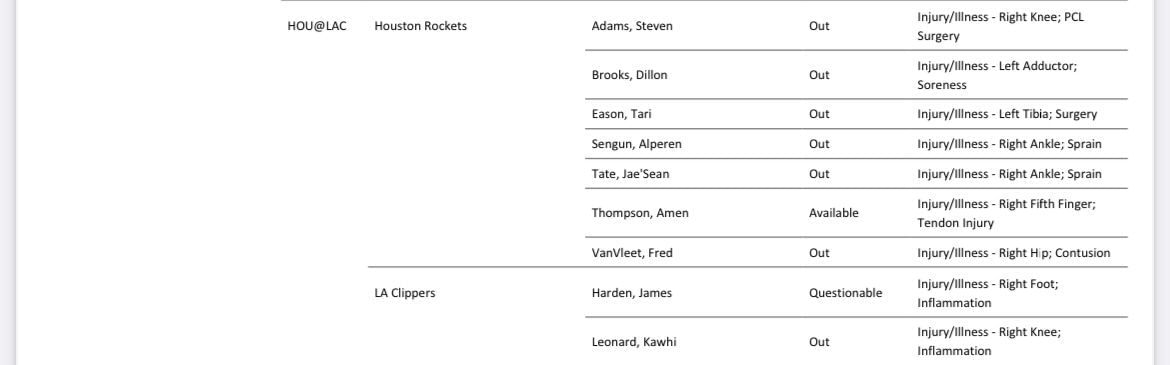 Being eliminated from playoff contention, the Houston Rockets (40-41) finished 11th in the West and will be without several starters. The LA Clippers (51-30) can lock up the fourth seed with a win despite being without star forward Kawhi Leonard.