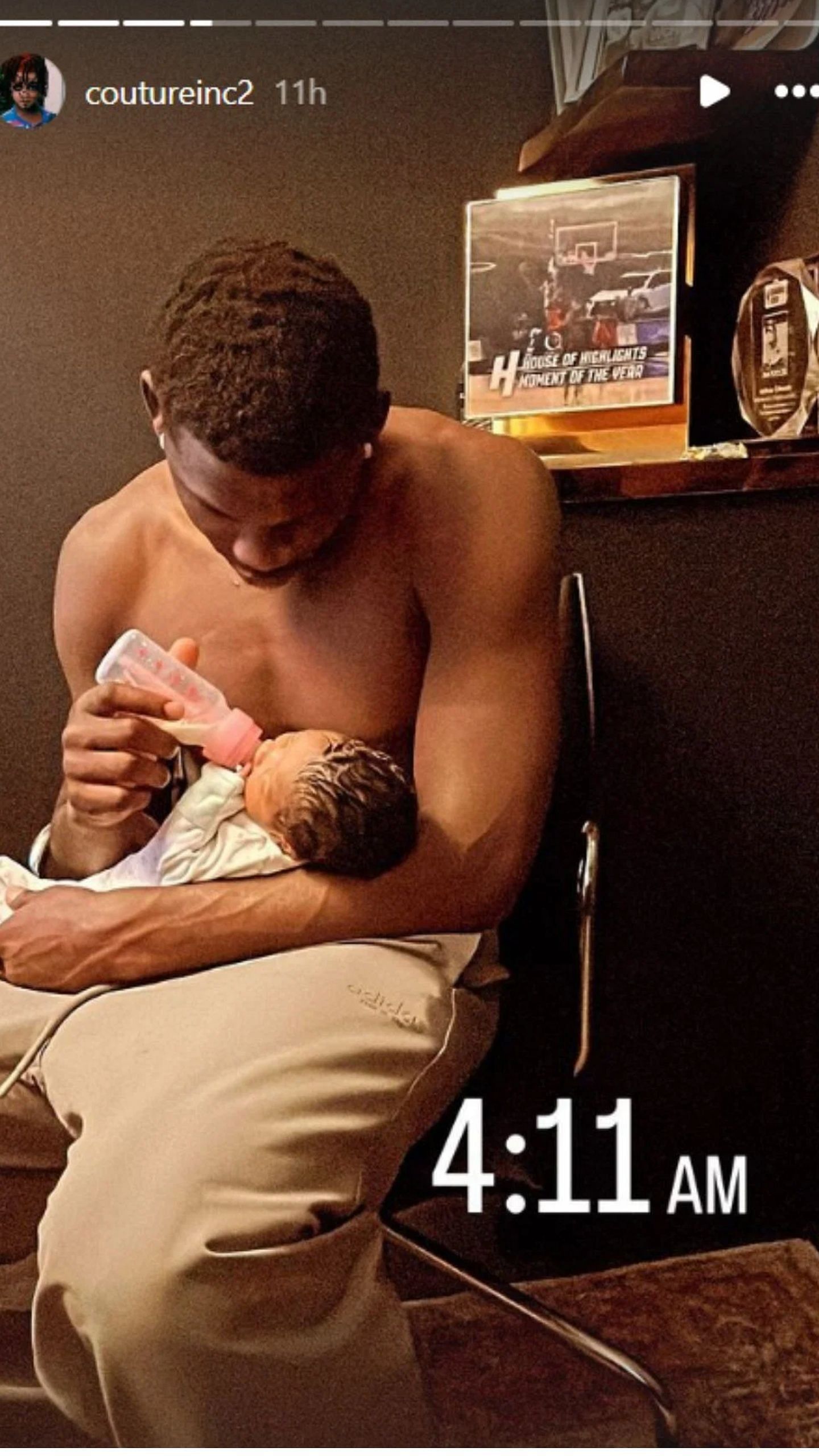 In another picture, the Timberwolves star was seen checking on his daughter after she was born in the hospital.