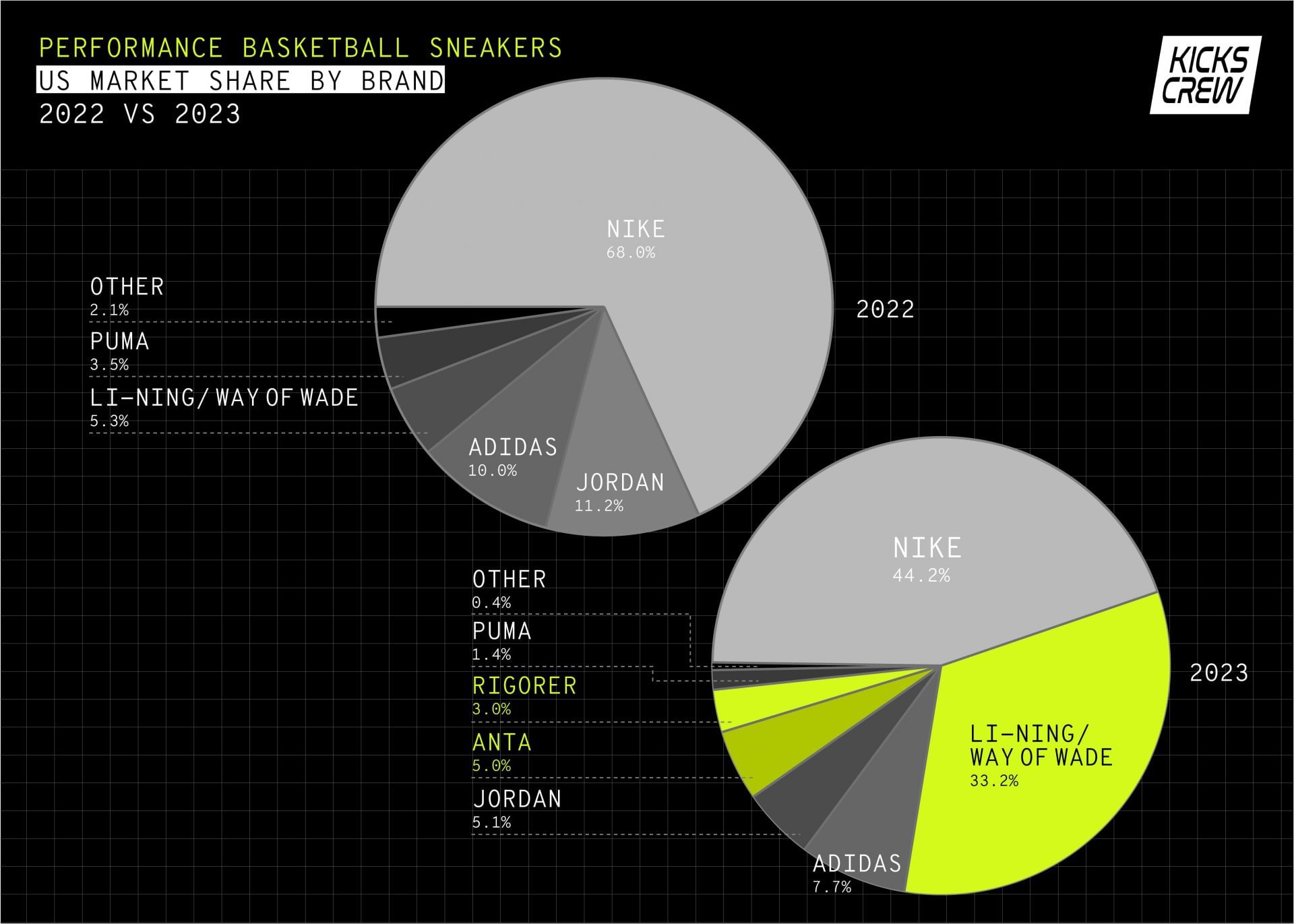 Now, however, brands like Lin-Ning/Way Of Wade, ANTA, and Rigorer have begun to shake things up and disrupt the market. In a press release, KICKS CREW said it reported a 560% increase in Li-Ning/Way Of Wade sales.
