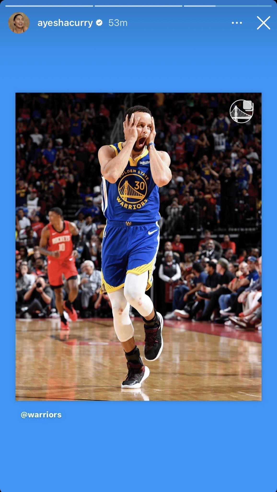 Ayesha shared on her Instagram stories Steph's wacky celebration during the Rockets win.