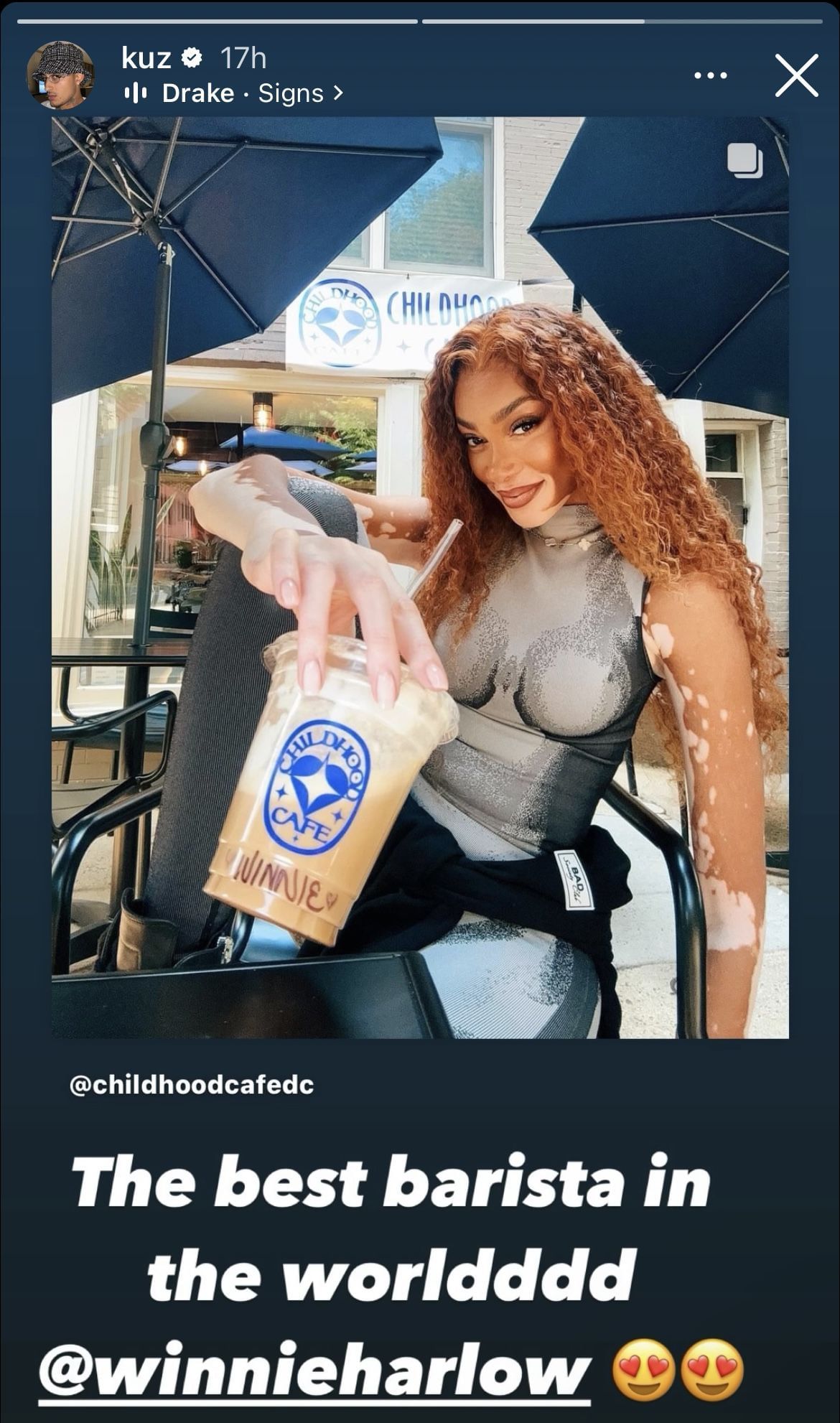 "The best barista in the world @winnieharlow," Kuzma posted.