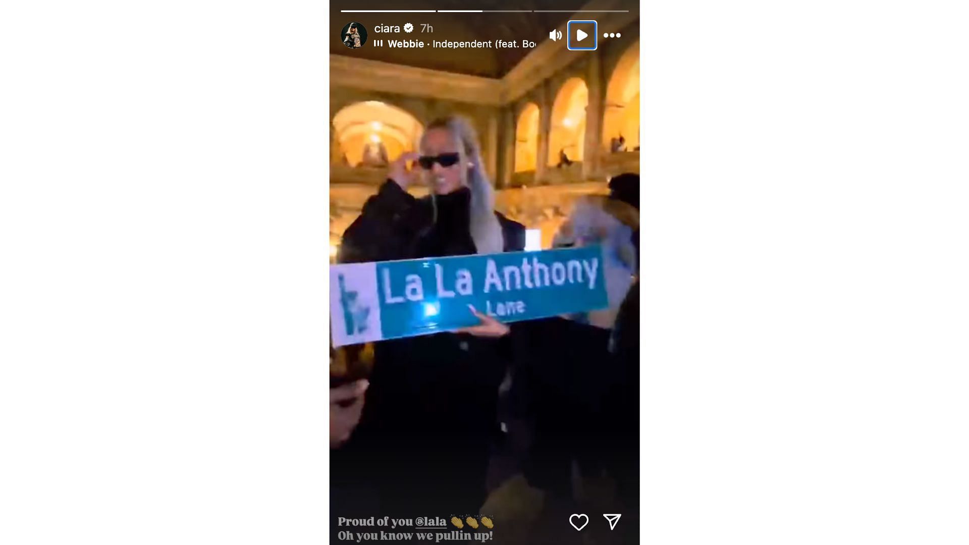 On Friday, Anthony shared a collection of images and short clips on Instagram of her special day. The television personality and actress can be seen holding up a "La La Anthony Lane" street sign as she is surrounded by fans and paparazzi. One video was shared by Ciara on her Instagram story with the popular artist sending out a wholesome message to go with the pic.