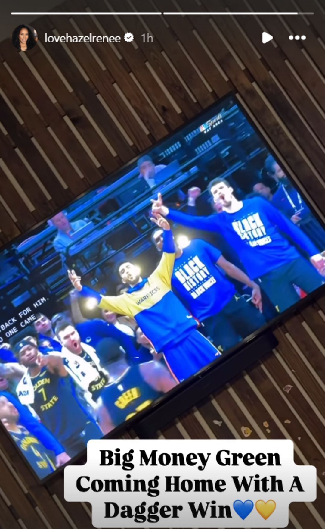 Draymond Green's wife, Hazel Renee, celebrated the Golden State Warriors concluding their six-game road trip with a win against the Houston Rockets on Friday ahead of the NBA All-Star break. Renee took to Instagram to share a video of Green's 3-point dagger, which put the Warriors up 105-96 with just 47 seconds remaining.