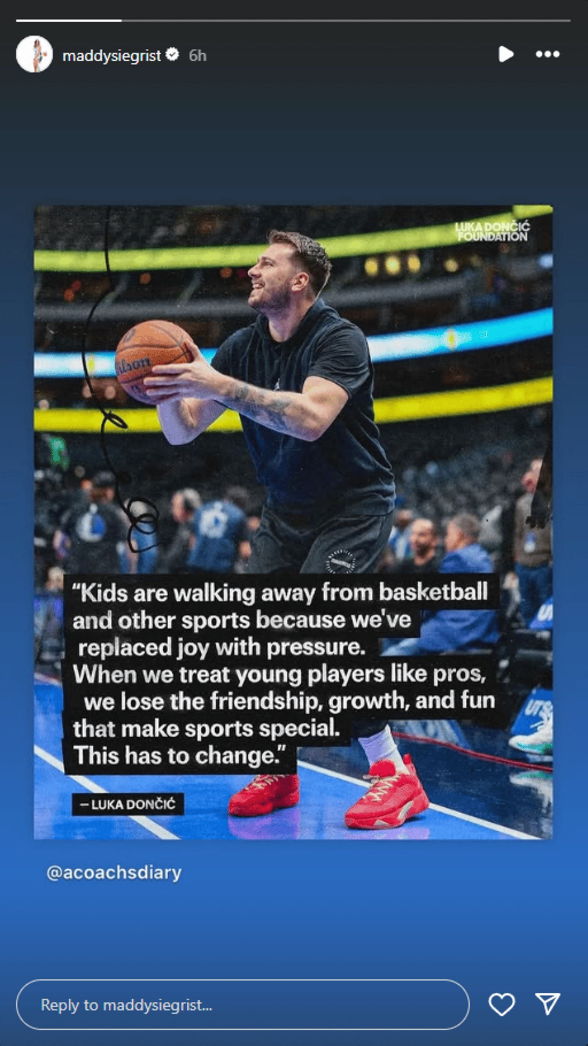It seems that Dallas Wings forward Maddy Siegrist agrees with Dončić's sentiments. She reposted a picture on Instagram shared by A Coach's Diary, featuring Doncic's quote.