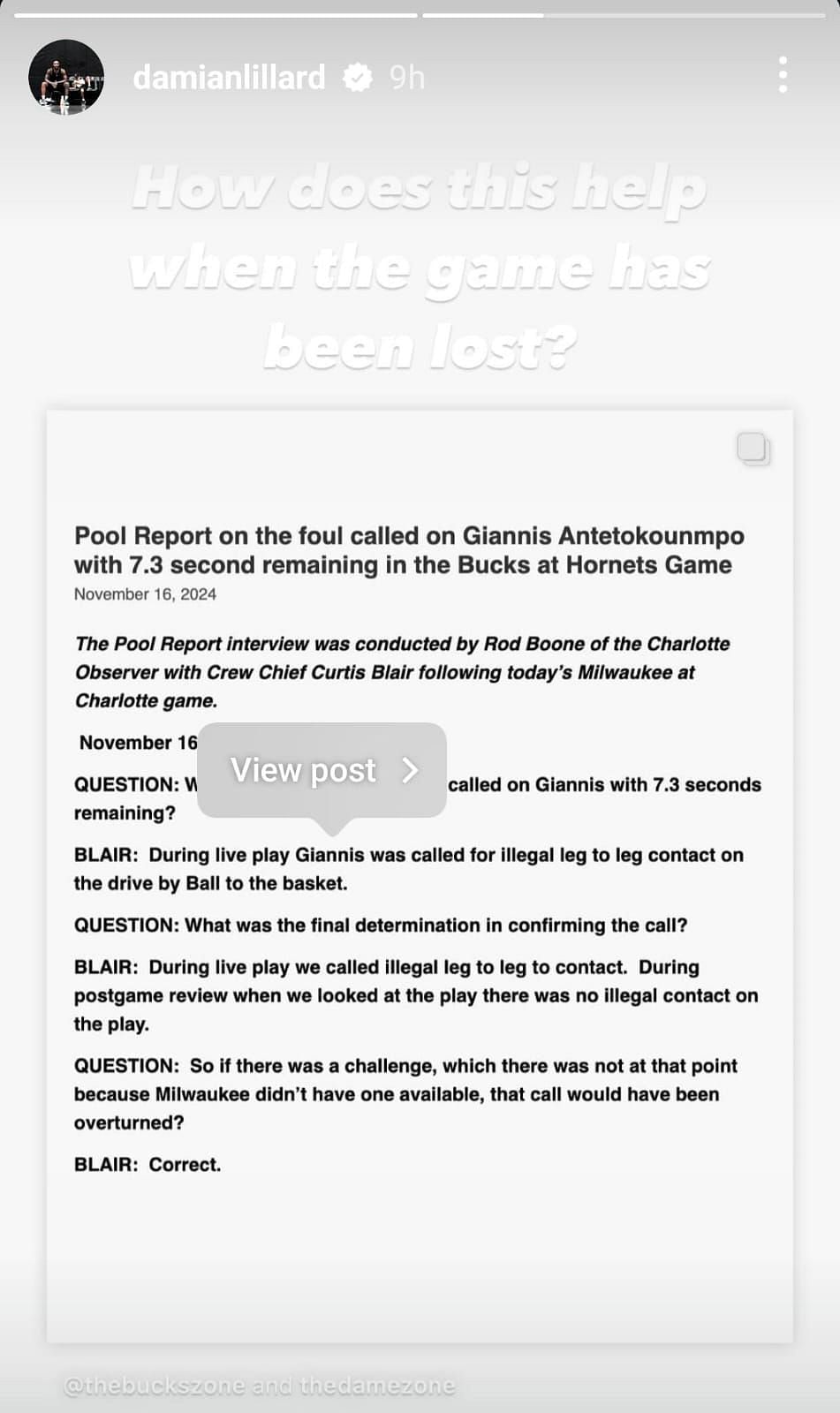 Following the loss, the referees acknowledged that, upon further review, there was no illegal contact, and the foul shouldn't have been called. It was too little, too late as Lillard called them out on social media.