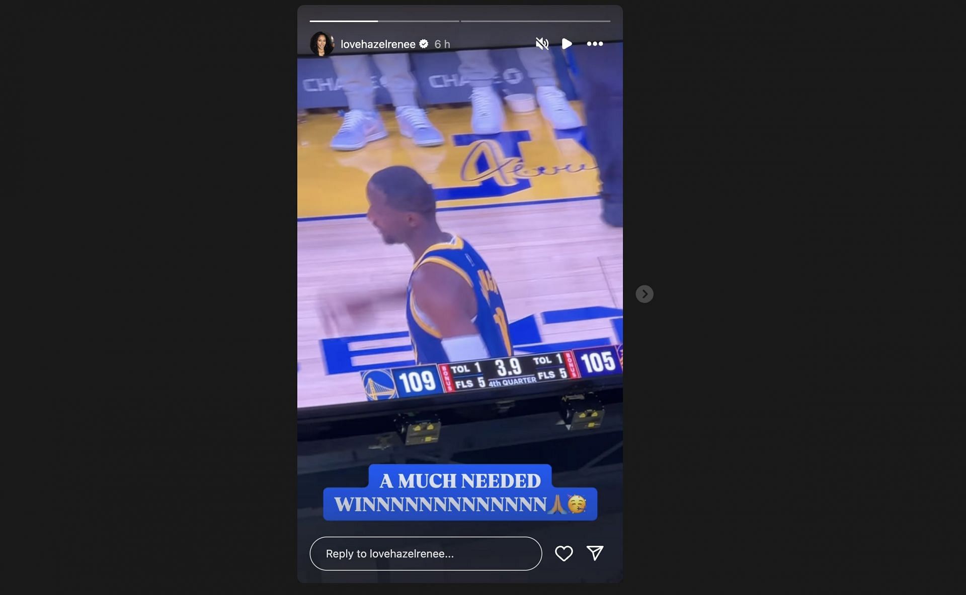 Hazel Renee was courtside for this game and posted a video of Jonathan Kuminga's game-sealing free throws.