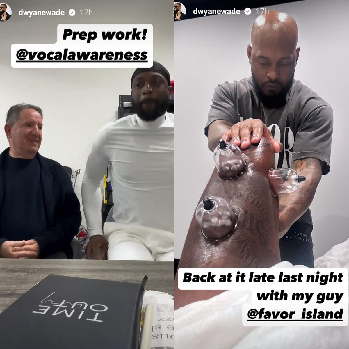 To recap, Wade's weekend was spent in style as he started with some teeth cleaning, went on to get cupping therapy, did some vocal awareness prep work, showed off his nails, and engaged in skin care before spending some time at the gym.
