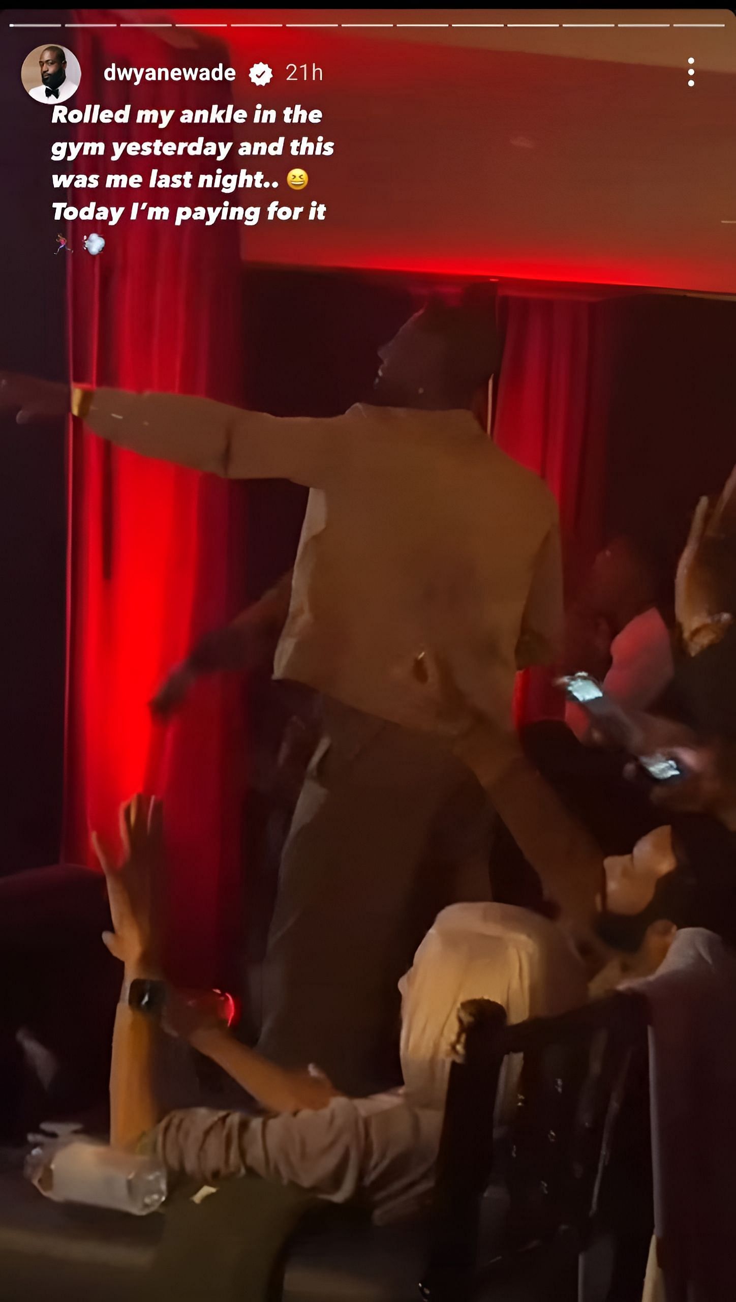 “Everyone can get it. Old, young, athletic, or unathletic,” Wade wrote in his IG story, explaining how his nankle got hurt.