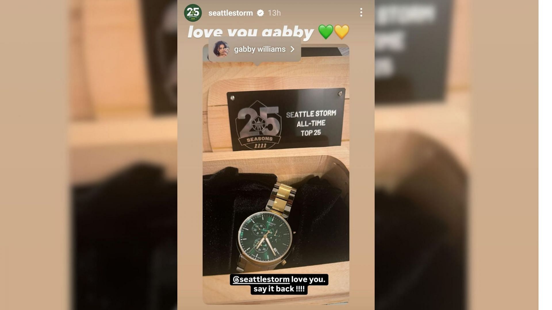 Seattle Storm forward Gabby Williams turned 28 years old on Monday, Sept. 9. And she also received an early birthday surprise when the team gifted her a Tissot timepiece to celebrate her inclusion in the franchise's all-time 25 list.