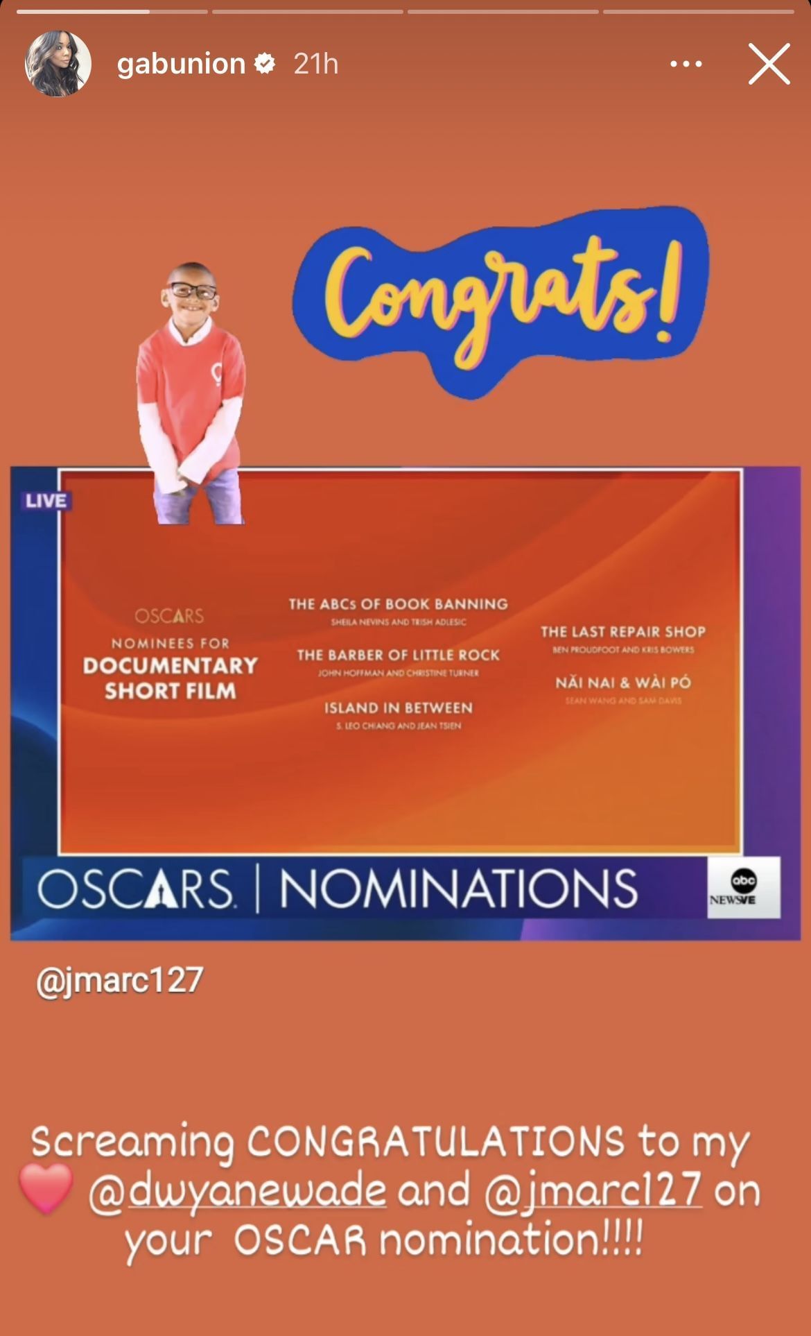 Dwyane Wade, who had an incredible 17-year NBA career, is an executive producer of the short film, "The Barber of Little Rock," which was recently nominated for an Oscar in the "Documentary Short Film" category. Wade's wife, Gabrielle Union, shared the nomination on her Instagram story with a one-word caption, "Congrats!"