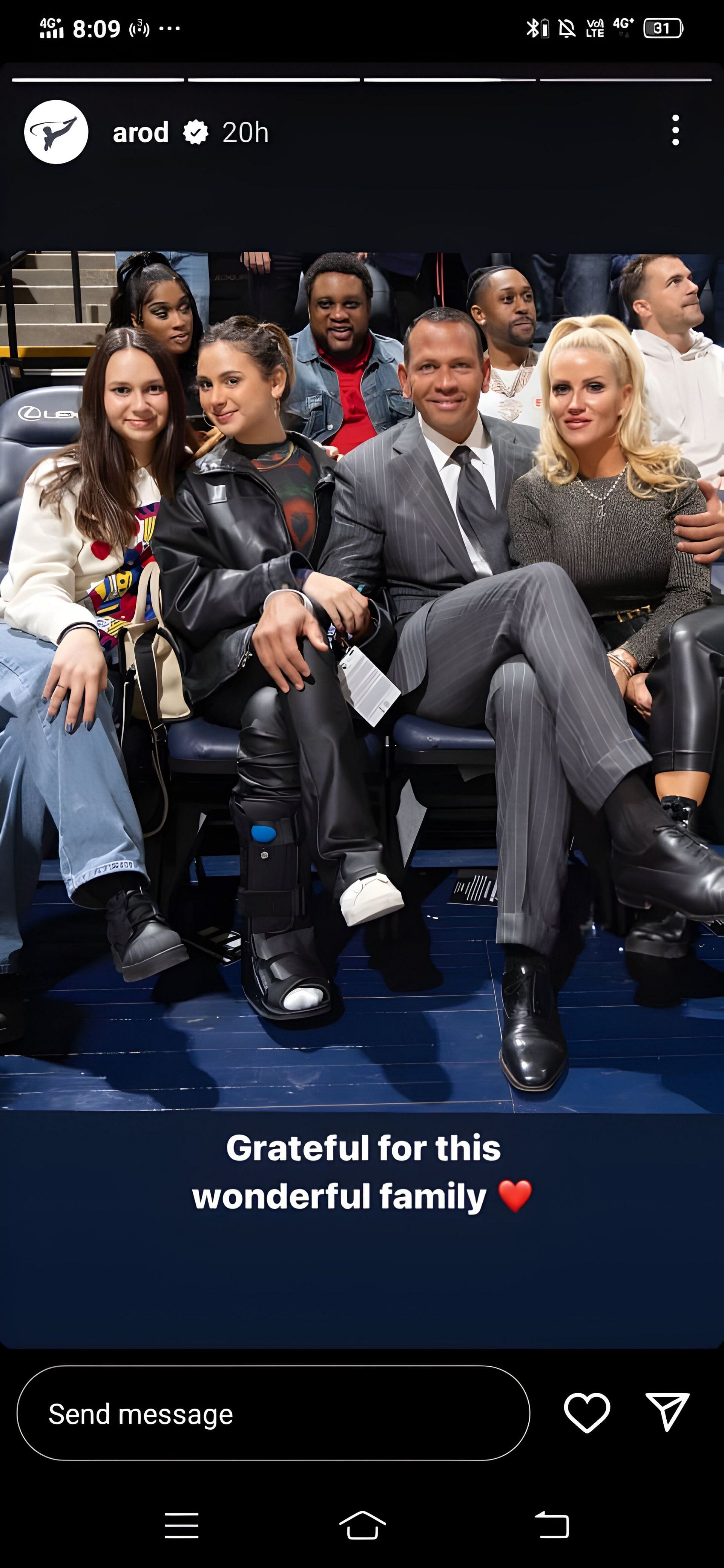 As A-Rod posted pictures with his family from the game night, he also congratulated the Timberwolves, who beat the 76ers 112-90.