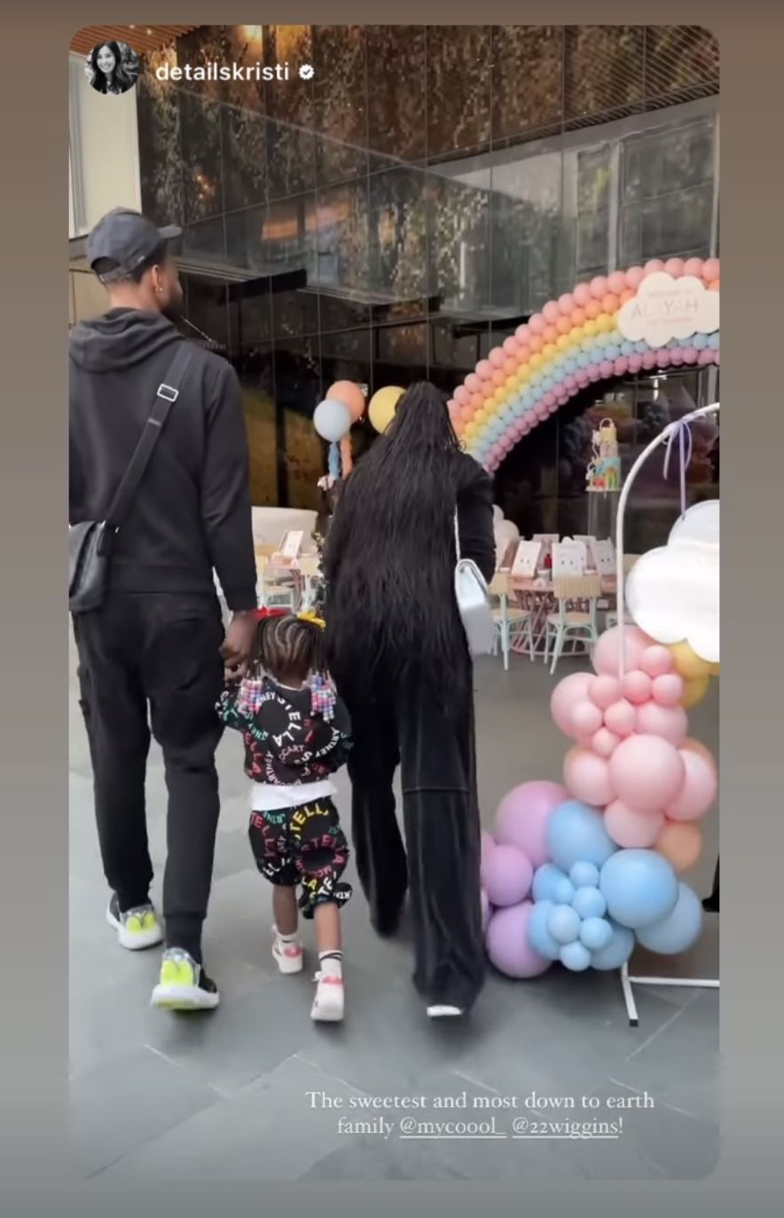 Various Instagram stories by event planner Kristi Lee showed the three together. Other stories showed Alayah playing with the party setup. Wiggins was seen walking into the party holding his daughter’s hand.