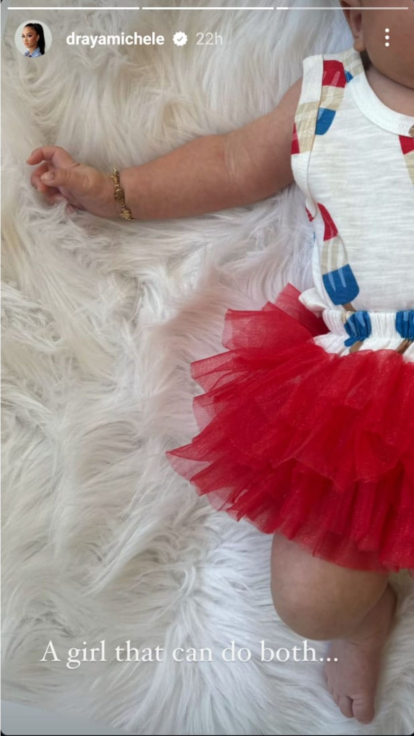 Michele posted a series of pictures of her daughter on her IG story. In three pictures that Jalen Green’s baby mama put out on her IG story, she had dressed her daughter in an off-white and red frock.