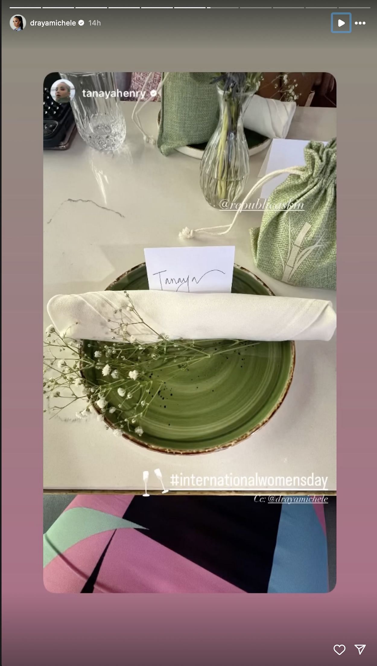 In the wake of the announcement, the designer, actress and social media influencer held a brunch for her friends to celebrate the occasion. Between International Women's Day and the announcement of her pregnancy, she had plenty to celebrate, sharing photos from the event on her story.