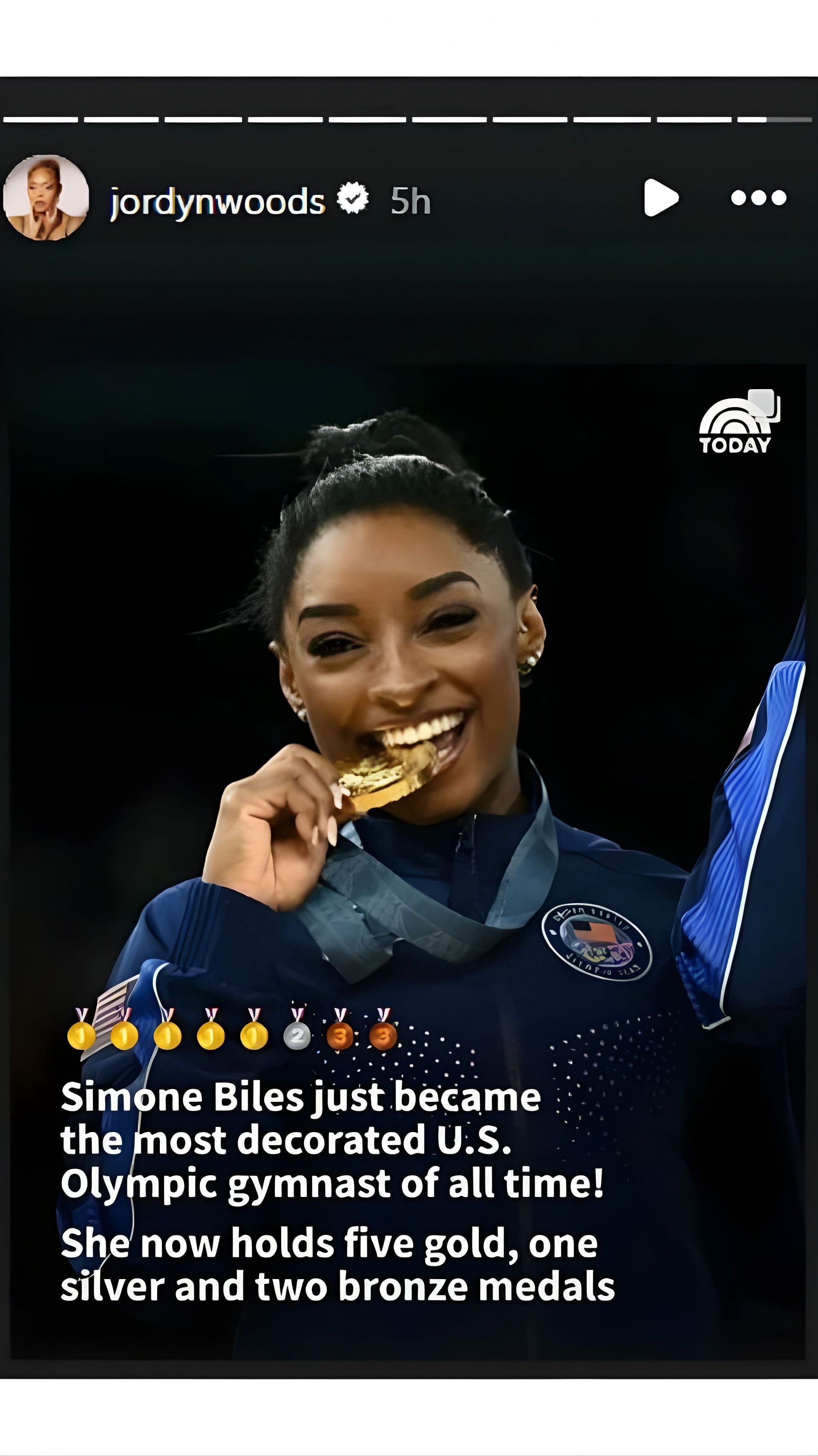 Joining many famous names congratulating one of the greatest Olympians of all time, Jordyn Woods also sent a shoutout to Biles. Woods posted a story hailing Biles' achievements.