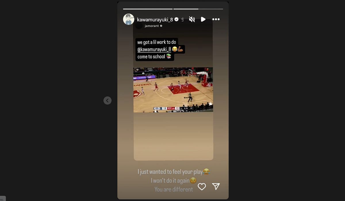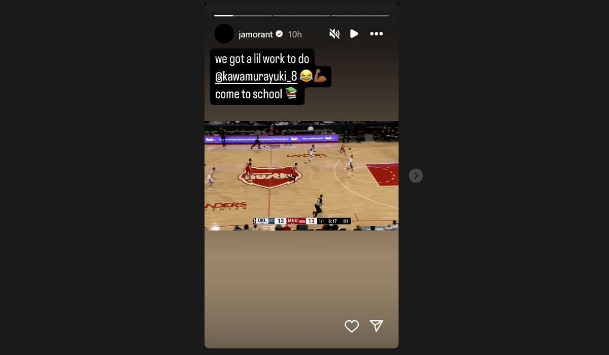 Morant shared the video of Kawamura’s bold move on his Instagram story, adding a humorous caption that perfectly captured the moment.