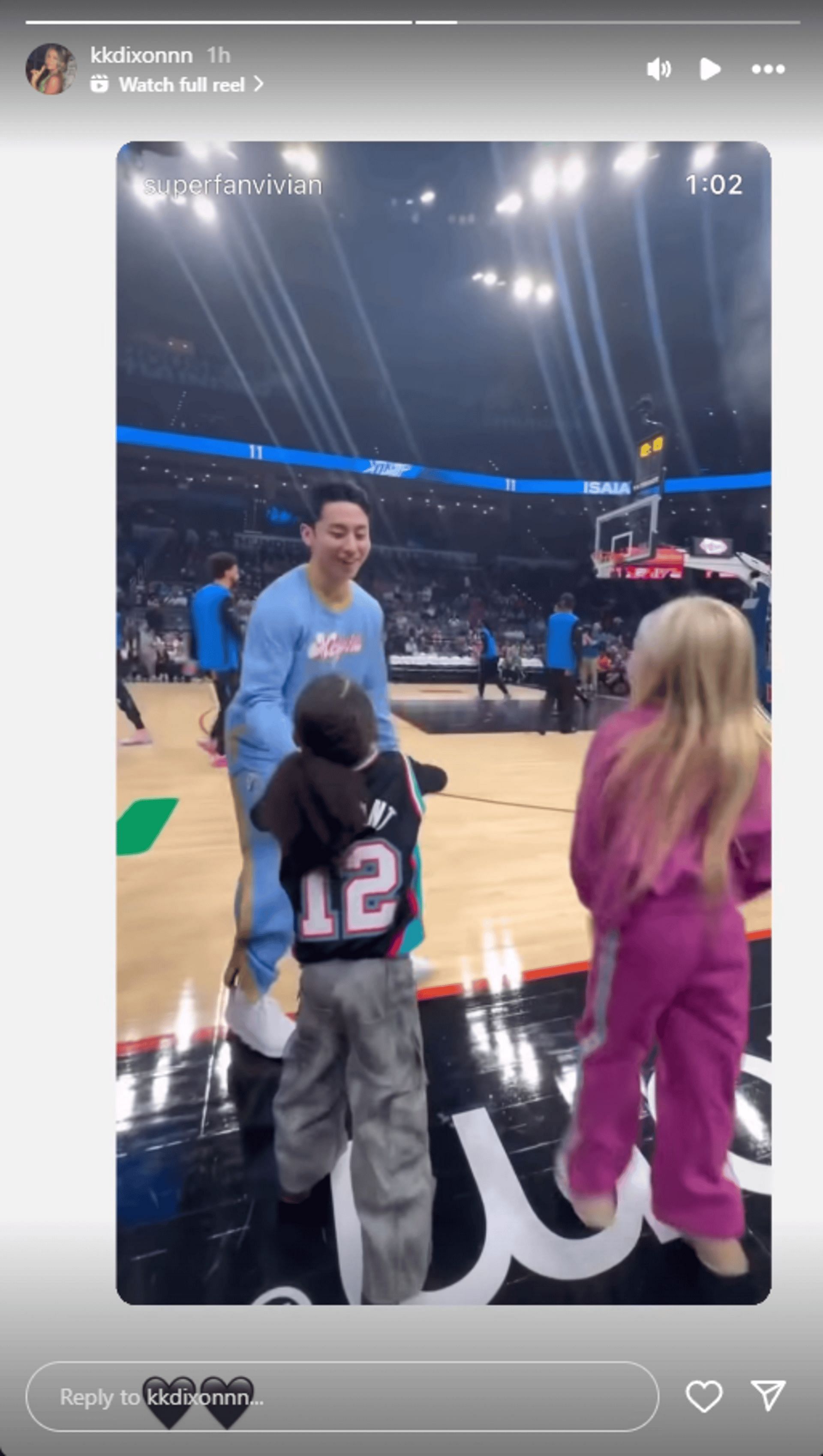 Dixon reposted the video which showed Kaari J and her friend greeting the Memphis Grizzlies squad courtside. She captioned the story with two hearts.