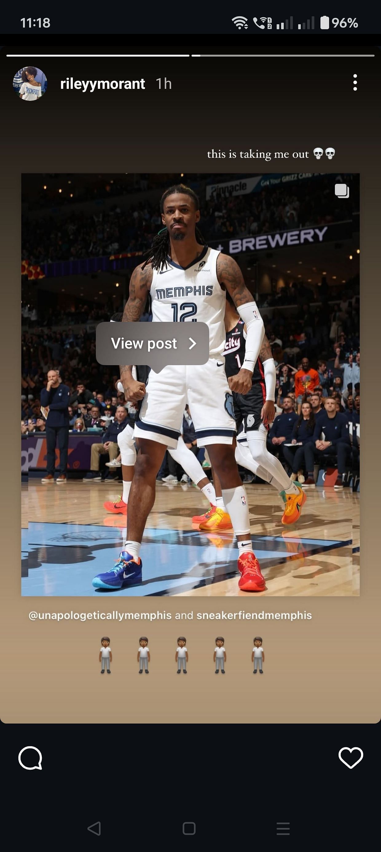 After the win over the Blazers, Riley Morant took to IG to share a pic of the Grizzlies superstar posing with his signature mismatched Nike JA 1s.
